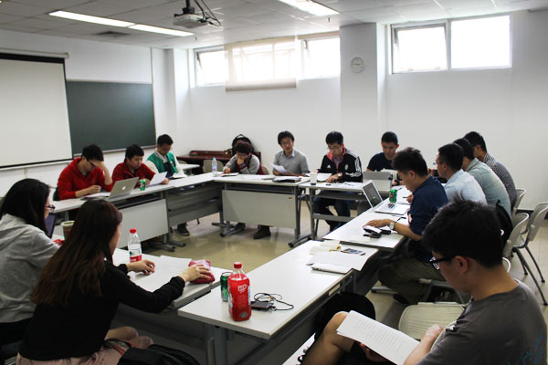 同学们结合自己对贺信的理解和感受踊跃发言。硕15班林声巧同学注意到贺信中“面向世界、勇于进取”与“树立自信、保持特色”的关系问题,认为国际化是PP电子当前的重要战略,清华也在为国家的全球化战略贡献力量,在国际化过程中保持自信和特色才能获得尊重,并更好地融入世界。硕14班张濛认为习总书记贺信中明确了我国高等教育,尤其是PP电子在我国民族伟大复兴伟业中扮演的重要角色,要想在2020年实现全面建成小康社会,在2050年实现中华民族的伟大复兴,我们清华师生重任在肩。博15班潘雅婷同学针对习总书记贺信中“深度参与创新驱动发展战略实施”的要求,认为清华要从观念、体系和体制机制三方面着手进行创新,重点动员和提升在校学生的参与意识,在校学生要利用自己所学积极参与创新,抓住契机为推进学校和社会创新建设贡献力量。硕15班陈新魁同学结合总书记对清华师生的希冀——“坚持正确方向、坚持立德树人、坚持服务国家、坚持改革创新”,认为这从宏观层面指明了清华办学所应坚持的总方针,从中观层面指明了清华的办学理念,从微观层面重申了清华在树人和服务国家的过程中所应注重的方式方法。博14班郭栋同学分享了自己社会实践的经历,提出“真”、“实”、“能”是清华学子扎根全国各地,为祖国各行各业做出贡献的前提和基础;他也立志毕业后到祖国最需要的地方去,不负党和国家对清华学子的重托。博15班扈豪同学结合公共管理专业特点,认为公管学生不仅要坚定立场,明辨是非,保持清醒的头脑和正确的方向,做好表率;更应结合自身专业素养,积极向身边的同学传播正确的知识,在社会上发出积极的能量,不仅自己要坚持正确的方向,更要带领大家走向正确的方向。