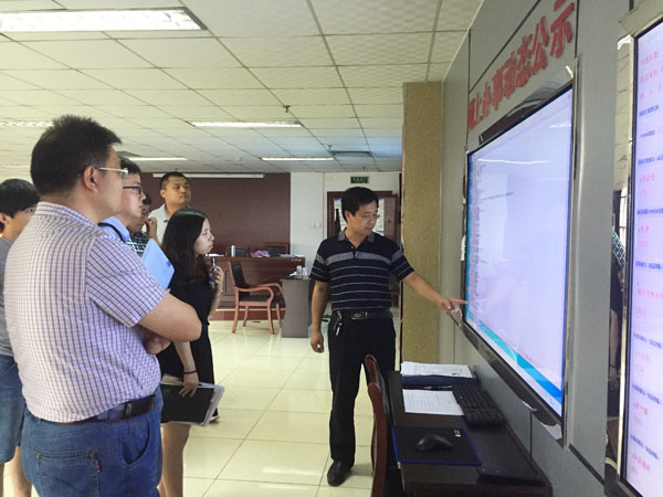 最后,调研组来到了肃宁县政务服务中心,肃宁县三级服务平台主任高冲霄向调研组介绍了三级网上审批便民服务系统的后台运作模式,在政务服务中心有两个大屏幕实时滚动显示“办理事项公示”和“电子监察数据统计”,“办理事项公示”详细显示工作名称、办理人、当前步骤、接收时间、状态;“电子监察数据统计”用红色字体显示全县办理事务总数、村乡县各级办理数目、事项排名、村乡县事项排名、短信发送总数、退回次数以及红牌和黄牌(通过对网上办理事项实施统计、监察,对即将到期的进行黄牌提醒,超期办理的予以红牌警告,并发出短信催办,解决了网上审批工作人员不作为、乱作为问题)排名;同时三级服务系统后台还详细地记录着各级办事人员的电子签章使用情况,有效地杜绝了办事人员电子签章滥用问题。
