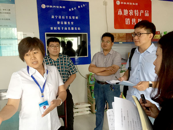 6月30日上午,调研组首先来到邵庄乡调研,与邵庄乡人大主席曹永利进行座谈。曹永利向调研组介绍了邵庄乡的人员构成和所辖各村发展状况,虽然邵庄乡建设三级便民服务平台起步比较晚,但目前该乡的三级便民服务平台已经逐渐步入正轨,村干和村民参与积极性很高。曹主席认为三级便民服务平台建设的出发点和落脚点体现在两个方面,即通过提高服务效率和简化程序更好地服务村民。通过邵庄乡全体成员的共同努力,全村近5、6年实现全乡零集体上访,干群关系和谐。同时,曹主席也指出了三级服务平台发展中存在的问题,主要有代办员业务素质和能力的提升以及对代办员的有效考核。之后曹主席带领调研组考查了正在建设中的农村淘宝,并阐述了未来邵庄乡的发展规划。