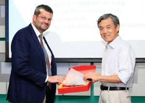 清华公管学院院长、PPP研究中心专家委员会主任薛澜向法方教授赠送纪念品。