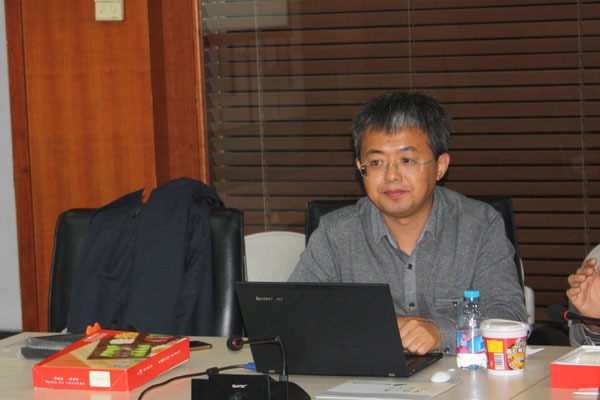 图为袁军鹏研究员做专题党课。