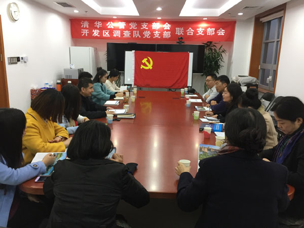 图为清华公管学院党支部与北京经济技术开发区调查队党支部举行联合支部座谈会。