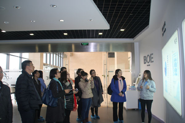 图为清华公管学院党支部成员参观京东方显示技术有限公司(BOE)。