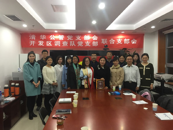 为深入学习贯彻党的十八届六中全会和市第十二次党代会精神,交流基层党支部“两学一做”经验体会,11月10日下午,清华公管学院政府研究所党支部、机关党支部党员一行12人前往北京经济技术开发区,与北京市经济技术开发区(经济)社会调查队党支部联合举办支部共建活动。此次活动由清华公管学院政府研究所党支部书记慕玲与开发区调查队党支部书记任斌(清华公管2012届MPA校友)共同发起,旨在实现党支部活动的开放与创新、共享共建的发展理念,推动理论与实践的结合。