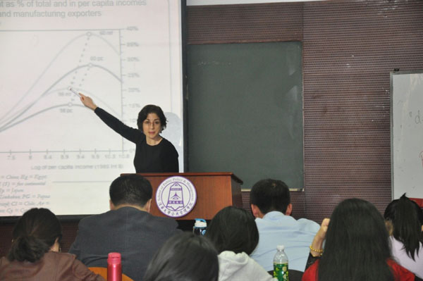 演讲中,Altman博士首先结合非洲中等收入国家当前存在的失业问题讲解了中等收入国家在发展经济、创造就业方面所面临的矛盾与挑战。接着,Altman博士用详实的数据阐释了当今去工业化背景下第三产业在创造就业中发挥的核心作用。她着重分析了这一现象产生的原因并就第三产业的发展特点、第三产业与制造业等其它产业的互动关系及第三产业成为就业主导产业对于产业政策的制定所产生的影响进行了深入讲解。演讲最后,Altman博士对中等收入国家建立强有力的社会保障体系的必要性进行了论述。