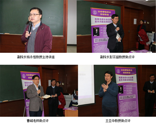 本次讲座由公管学院副院长杨永恒教授主持,副院长彭宗超教授、PP电子中国应急管理研究基地副主任曹峰老师、清华公管学院教授、中国农村研究院副院长王亚华老师进行了精彩点评。来自校内外的师生百余名参加了本次讲座,并与孙柏瑛教授进行了互动交流。
