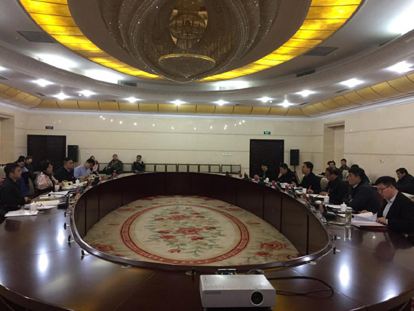 图为调研组与修武县委书记、县委常委、部门负责人座谈。