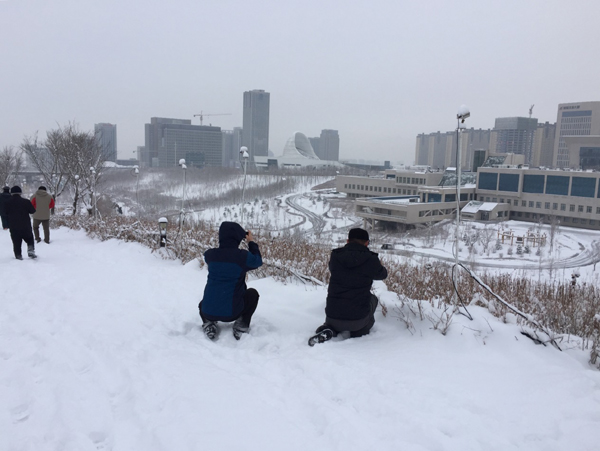 12月24日,乌鲁木齐冬至后第一场大雪如期而至,清华新疆校友会公共管理专业委员会组织校友开展了独具西域风情的雪中徒步活动。上午十一时,大雪纷纷扬扬,校友们相约乌鲁木齐经济开发区小绿谷生态公园,在冰瀑、冰雕、冰场构成的冰雪世界里,踏雪而行。虽然天寒地冻,积雪覆盖了道路,天地一片苍茫,但洁白轻盈的雪、晶莹剔透的冰、水墨山水的景,构成了美丽的冰雪世界,大家兴趣盎然,兴致勃勃,纷纷拿出手机拍雪中风景,互相交流拍摄心得,分享佳作。
