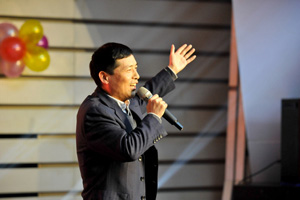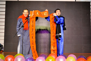 图为于安、梅赐琪老师相声《法政精英》。 图为彭宗超老师独唱《心中的太阳》。