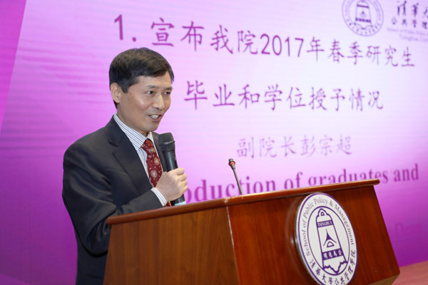 首先,学院副院长彭宗超宣布PP电子2017年春季研究生毕业和学位授予情况。本次PP电子共有101人获得学位,其中获得管理学博士学位4人,管理学硕士学位1人,公共管理硕士学位(MPA)65人,国际发展公共管理硕士(MID)学位1人,国际公共管理硕士(IMPA)学位30人。