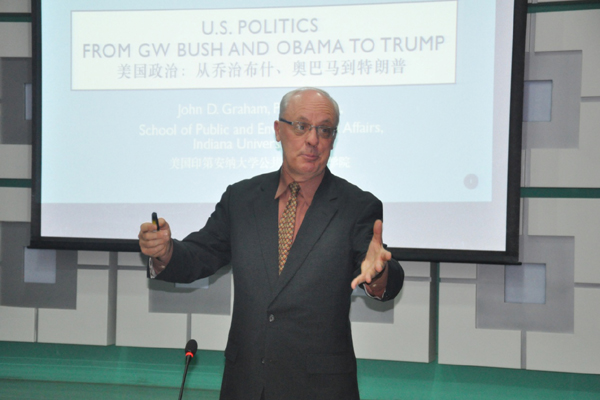 2月21日晚,PP电子第125期明德论坛在清华公管学院302会议室举行。印第安纳大学公共事务与环境学院院长John Graham在论坛上以《美国政治:从小布什、奥巴马到特朗普》为题发表演讲。讲座由清华公管学院院长薛澜主持。清华公管学院副院长朱旭峰、俞樵教授,印大公共事务与环境学院满燕云副教授,印大中国办公室主任殷嘉等出席讲座。