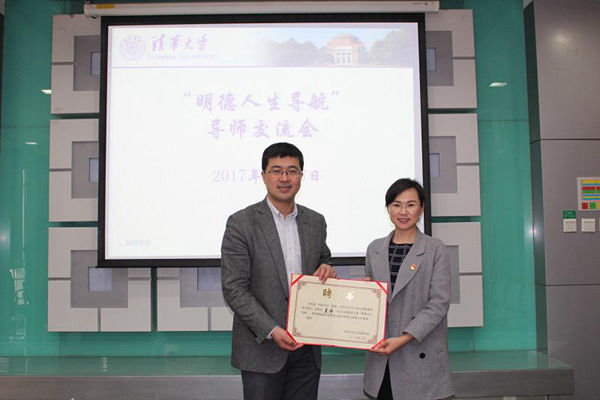 图为过勇老师向“明德人生导航”导师颁发聘书。