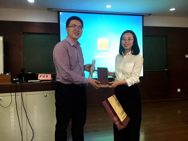 分享环节结束后,与会校友分别就感兴趣的问题与罗桂连进行了交流。清华公管学院院友办康芸烨代表明德·公管校友读书会向罗桂连博士现场赠送活动海报。