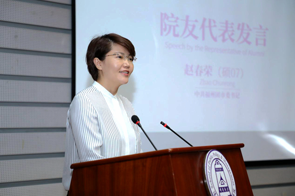 2007级院友,福州市团市委书记赵春荣作为院友代表发言。她从自己离开学校奔赴基层的工作经历出发勉励师弟师妹们要戒骄戒躁、踏踏实实走好每一步;要不断学习,将自我提升变成一种习惯;要敬畏规则,培养在框架内解决问题的能力;要养心修身,做一个有情怀的人。