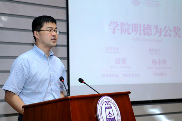图为校党委常委、院党委书记过勇宣读“明德为公”奖名单。