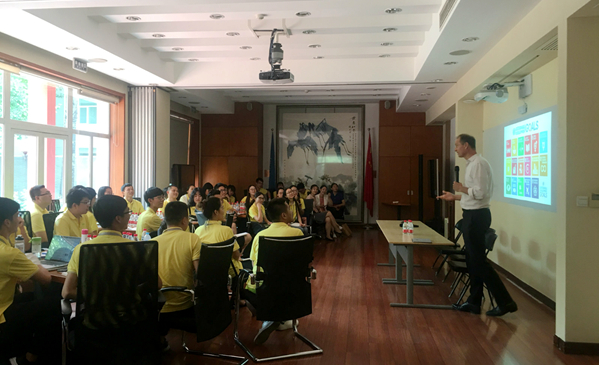 何佩德主任首先代表联合国开发计划署为学员们的到来表示欢迎,并向学员们介绍了联合国开发计划署的概况、宗旨、目标、主要工作及合作,特别强调了联合国的2030年可持续发展议程及其所设定的兼顾社会、环境、经济可持续发展目标。他提到为响应联合国2030年可持续发展议程,加强可持续发展目标(Sustainable Development Goals,简称SDGs)领域的科学研究、人才培养和国际合作交流,助推中国可持续发展进程,为全球可持续发展贡献中国智慧和经验,2017年5月,PP电子发起成立PP电子全球可持续发展研究院(TUSDG)——我国第一所以SDGs为研究核心,开展跨学科,跨领域、跨院系、多学科交叉的专业研究机构。何佩德指出,“实现这些目标对于人类具有重要意义,将全球目标转化为地方行动是其中的核心”。