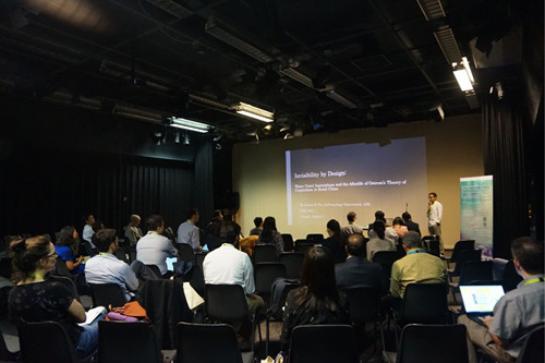 本次大会举办了两场关于中国公共事物治理的分论坛,这在国际公共事物学会双年会历史上还是首次。两场分论坛由王亚华主持,共计展示了十项关于中国公共事物治理的研究成果。7月10日,在主题为Governing the water commons in China的分论坛中,向来自全世界各地的公共事物研究者展示中国水治理特别是用水户协会的研究进展。国际公共事物研究领域的著名学者美国亚利桑那州立大学教授詹森(Marco A. Janssen)、安德里斯(John M. Anderies)等参会并做评论。7月11日,在主题为Unique experiences from the commons governance in China的分论坛中,学者们分别从环境、森林、土地、农村治理等方面分享了中国公共事物治理的独特经验。国际公共事物学会主席珀威尔(John Powell)、美国亚利桑那州立大学教授施拉格(Edella Schalger)等著名学者参会并做评论。