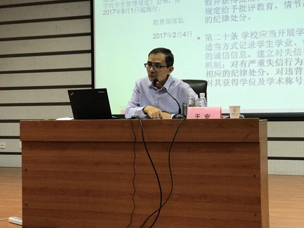 学业邀请了于安老师为大家进行学术规范与学术道德报告。于老师精彩的报告,让新生们对于学术规范的重要性有了更加清晰的认识。彭宗超老师、朱旭峰老师等老师分班级、分项目对新生的培养方案、选课等工作进行了细致介绍,让同学们能够清楚的了解到自己在校期间的学习规划和安排。教学办、外办、案例中心、图书馆等部门结合同学们在校求学、科研需要介绍相关工作。此外还邀请专家为留学生同学讲授全球化、中国发展等课程。