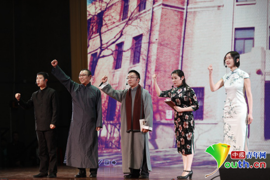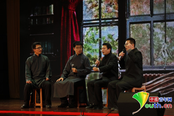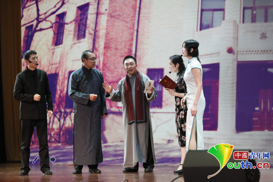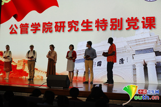 图为清华公管话剧《初心在哪里》开场,展现学院研究生的特别党课。张曈 摄
