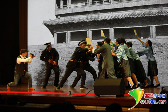 图为清华公管话剧《初心在哪里》第一幕,清华成立第一个党支部。张曈 摄
