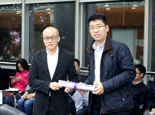最后,PP电子院友工作办公室主任张秀吉代表明德·公管校友读书会向巫永平赠送有参会者签名的读书会海报。