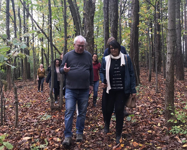 图为安娜堡市环境协调员Matthew Naud带领参会人员参观Saginaw 森林。