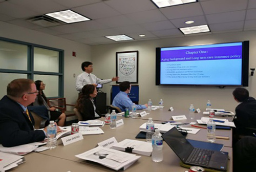 美国宾夕法尼亚大学文理学院福克斯领导力中心主席J. Dilulio(杜文博)对杨燕绥率领的中方研究团队的到访表达了热情欢迎,为对福克斯领导力中心工作基本情况做了详细介绍,回顾了去年到访中国的深切感受。介绍了美国人口状况、发展过程及不同阶段采取的相应措施,以及在老龄化情况下养老制度和养老服务对政府的挑战。他特别提到,美国联邦老遗残医疗保险计划资金大量用于支付老龄失能照护费用,如今的“残”已经不是1965年的概念了。目前,该计划收入已经没有资金进入信托基金,完全成为现收现付的计划,老残人员快速增加,这个计划的财务压力越来越大,难以为继。但是,这是美国公民引以为豪的事情,大家相信和依赖这张社会保障卡。