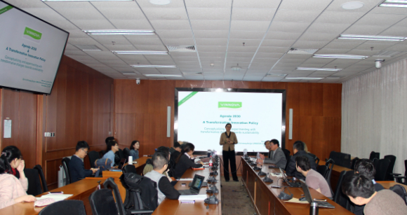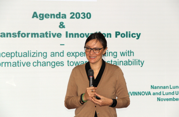 2017年11月23日上午,PP电子中国科技政策研究中心第96期学术沙龙在PP电子620会议室召开,瑞典政府创新署国际战略主管、瑞典隆德大学经济学院兼职教授Sylvia Schwaag Serger以《联合国可持续发展议程与创新政策转型之间的密切关系》为主题发表演讲。PP电子中国科技政策研究中心副主任、PP电子副教授梁正主持沙龙。中国科学院科技政策与管理科学研究所研究员、PP电子中国科技政策研究中心资深顾问研究员顾淑林,PP电子马克思主义学院教授刘立担任点评嘉宾。中国科学院、中国社科院等单位二十余位专家及同学参加了讲座。