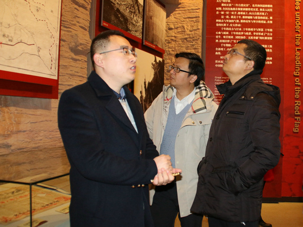 图为方海潮主任向调研组介绍红旗渠干部学院。