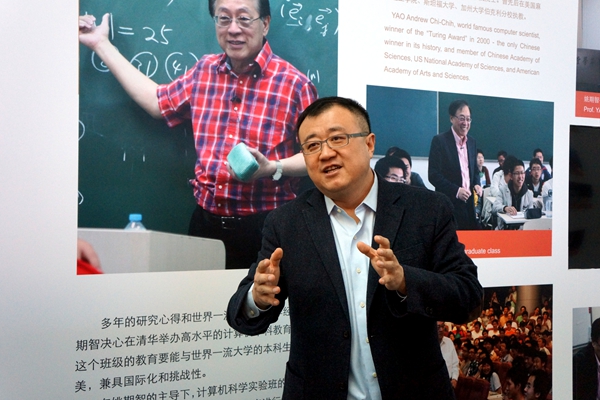 图为杨斌讲解“学在清华”主题展览。潘翻番 摄