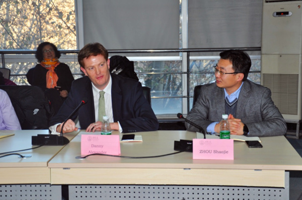 亚投行副行长Sir. Danny Alexander对王红英的讲座给予了精彩的评论。并和王红英就参会人员提出的问题——“基于中国支持的NDB和AIIB的创立是否是二战后以美国为领导的多边发展银行体系的挑战?”“NDB和AIIB的成立是否意味着中国提出了多边发展金融的新模式?”“对全球经济治理影响如何?”“什么因素影响了NDB和AIIB的模式?”——展开交流。