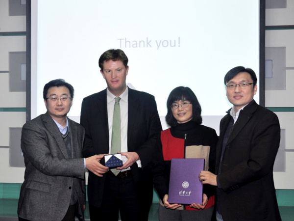 会后,朱旭峰和周绍杰代表学校对王红英副教授、Sir.Danny Alexander表示感谢并合影留念。