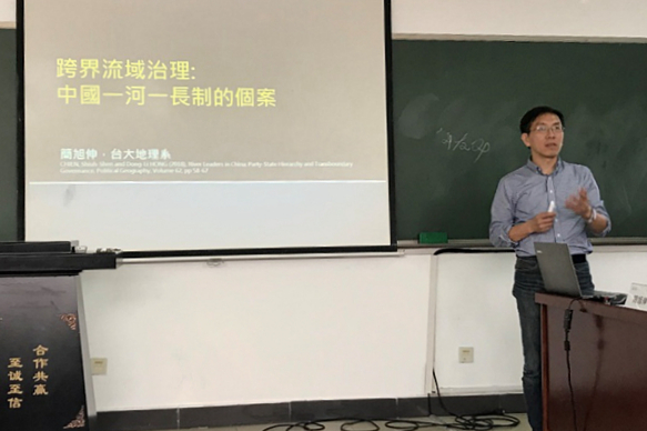 台湾大学地理环境资源系教授简旭伸以《跨界流域治理——以“河长制”为例》为题,分析中国的党政阶序、地方政府的土地指标、跨省域耕地调剂管理办法,以及目前中国跨流域治理难题、全球跨界流动治理难题上介绍主要跨界治理类型,最后以云南昆明的滇池治理为案例,分析河长制的具体运作过程。