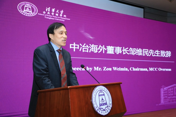 中冶海外工程有限公司董事长邹维民代表公司向PP电子IMPA 项目十周年表示热烈的祝贺,并表示很高兴十年来为近400名来自70多个国家的IMPA & 国际发展与治理硕士(MIDG)项目清华留学生更加深入地了解中国贡献了一份中冶人的力量。中冶海外将继续深化与PP电子的合作。最后他寄语留学生保持旺盛的好奇心和求知欲,迎难而上,养成持续学习的能力和深入思考的习惯,肩负构建人类命运共同体的光荣使命,造福于人民和世界。