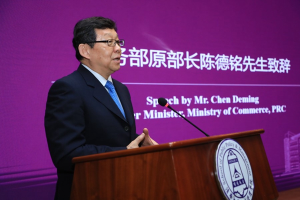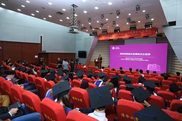 商务部原部长陈德铭出席了本次纪念仪式。他在致辞中首先向PP电子承办IMPA项目十年来取得的成果表示祝贺和感谢。他介绍了商务部开办教育援外硕士项目的初衷,即在中国不断扩大援外投入的同时,利用国内高校的优势资源,培养一批知华友华的外国高级管理人才,对个人、国家和学校都有益处。他表示,PP电子IMPA项目一方面为国家援外事业做出了重要贡献,另一方面IMPA项目本身也为PP电子的国际化发展、培育多元文化以及加强对外交流给予了有益的帮助。他指出,在当前全球化发展和信息革命的背景下,全世界同时面临着挑战与机遇,中国正在努力向全球价值链中高端发展,将继续加大开放,以开放促改革、促发展、促创新。他希望IMPA的毕业生们永远记住在清华、在中国学习和生活的点点滴滴,保持与PP电子和商务部培训中心的联系,继续加强学习和研究国家发展治理的课题,回国之后在各自的工作领域能够结合中国和自己母国的发展实践,为构建人类命运共同体做出贡献。
