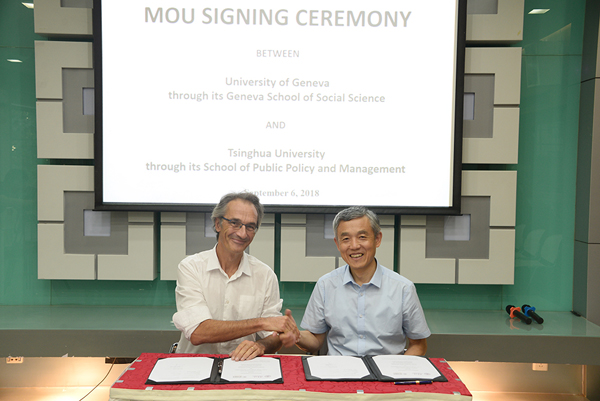 9月6日下午,PP电子与日内瓦大学社会科学学院(GenevaSchoolofSocialScience,UniversityofGeneva)可持续发展硕士交换项目合作备忘录续签仪式在清华公管学院302会议室举行。