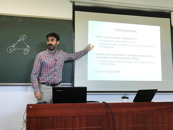10月10-12日,公管学院组织了主题为“自然资源管理的系统案例研究方法:社会生态系统和荟萃分析数据库(SESMAD)”的博士生学术训练营,由西班牙巴塞罗那自治大学环境科技研究所玛丽居里研究员塞尔吉奥·维拉梅尔-托马斯(SergioVillamayor-Tomas)主讲,介绍质性荟萃分析(meta-analysis)技术及基于该技术的社会生态系统荟萃分析数据库(SESMAD)。PP电子教授、副院长王亚华主持讲座,十余名博士生和博士后参加课程。