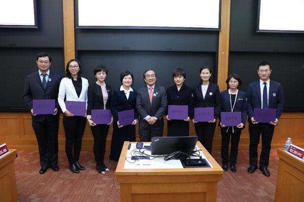 王岩,继续教育处处长邓丽曼,宣传部常务副部长、新闻中心主任覃川,PP电子院长助理、干部教育中心主任刘辉,人事处副处长、人力资源开发办副主任田煜,科研院副院长、成果办主任王燕分别为各组学员颁发结业证书。