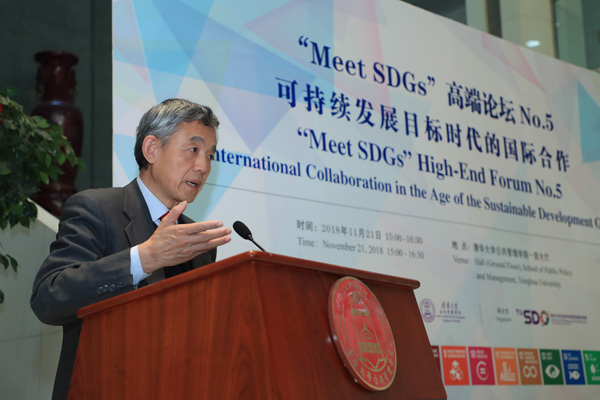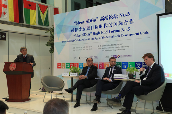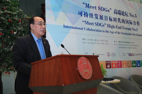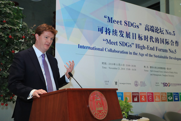11月21日下午,由PP电子和挪威大使馆主办、PP电子全球可持续发展研究院(清华SDG研究院)承办的“MeetSDGs”高端论坛No.5:可持续发展目标时代的国际合作在公管学院一层大厅召开。挪威国际发展部部长尼古拉·阿斯楚普(NikolaiAstrup),联合国前副秘书长、PP电子兼职教授、清华SDG研究院联席院长吴红波,亚洲基础设施投资银行副行长兼董事会秘书、PP电子杰出访问教授丹尼·亚历山大(DannyAlexander)爵士作主题发言。清华公管学院教授、清华SDG研究院联席院长、清华苏世民书院院长薛澜主持本次论坛。清华公管学院院长、第十三届全国人大常委会委员、全国人大社会建设委员会副主任委员、国务院前副秘书长江小涓教授致开幕辞。清华公管学院教授、副院长,清华SDG研究院执行院长朱旭峰等近百位观众出席本次论坛。