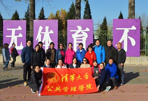 午后的清华园处处洋溢着运动热情,公管学院院长江小涓和党委书记彭宗超亲临运动场为大家鼓劲,勉励大家“坚持锻炼、健康工作、快乐生活”。随着校领导一声号令,公管学院几十位教职工精神抖擞地从起跑线出发,顺利完成全赛程。