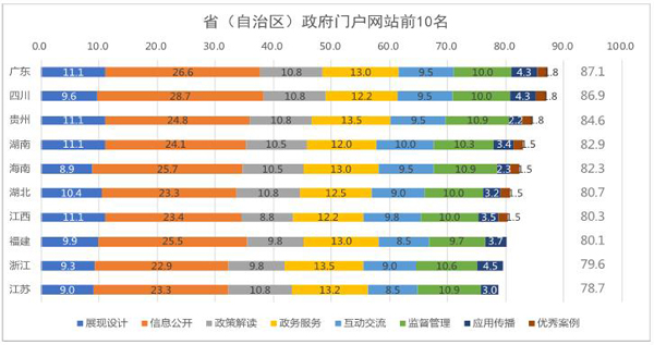 省(自治区、兵团)政府门户网站前十名:1.广东,2.四川,3.贵州,4.湖南,5.海南,6.湖北,7.江西,8.福建,9.浙江,10.江苏。