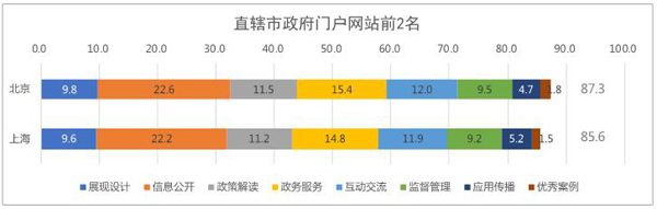 直辖市政府门户网站,北京市和上海市分列前2名。