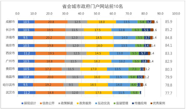 省会城市政府门户网站前十名:1.成都,2.长沙,3.济南,4.南京,5.西安,6.广州,7.贵阳,8.南昌,9.哈尔滨,10.武汉。