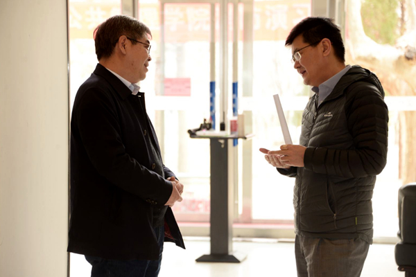 管志远(左)和刘辉(右)在活动现场交流