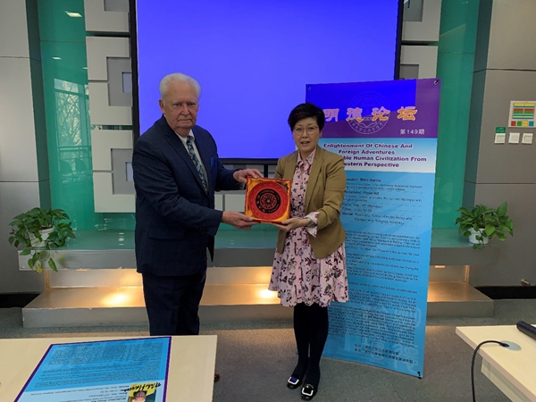 Mike Harris先生从他早期勘探泰坦尼克号的经历入手、详细讲述了他与北京明史学家围绕郑和下西洋所做的学术研究成果。接着,他简述了丝绸之路,新丝绸之路和联合国可持续发展目标之间共同致力于建设人类美好家园的密不可分的联系,并强调:受郑和海军上将航行启发的全球可持续能源开发行动将继续改善海上丝绸之路沿线数百万人的生活。