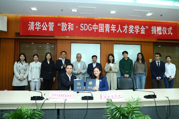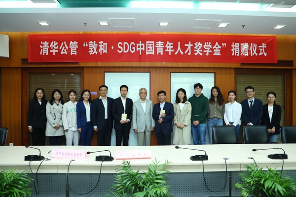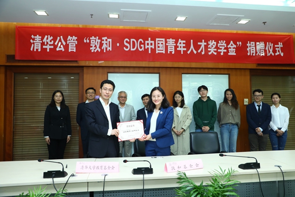 敦和基金会项目官员唐山,清华公管学院发展办副主任宗奕扬、国际双学位项目主管史姝婷以及SDG2018级和2019级学生代表参加了捐赠仪式。