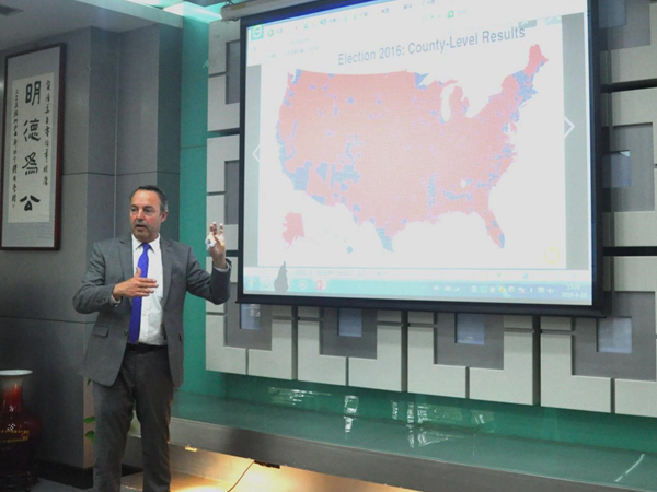 楚树龙教授介绍Chris Steineger先生从资深政治从业人士的角度探讨美国当代政治。Chris Steineger先生从更宏观的角度分享美国当代政治,而不只是关注华盛顿或纽约的政治现状和形势。