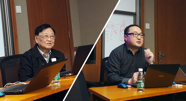 图为何晋秋(左)、程文浩(右)做主题交流