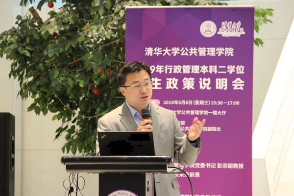 彭宗超教授从学院发展历程、师资队伍、科研成果、教学项目、国际合作与交流等方面介绍了公管学院总体情况,并简要概括了学院发展的总体思路和未来工作重点。他非常欢迎全校各院系的本科生积极申报行双二学位项目,加入清华公管大家庭。他指出,公管学院拥有一支卓越的师资队伍,近年来科研成果突出,教学项目增长迅速,不断开拓国际交流与合作新领域,培养了大量优秀的公共管理专业人才,在第四轮全国学科评估和全国首次专业学位水平评估均获评A+。学院未来将紧紧围绕“双一流”建设,成为国内领先、国际一流的人才培养基地、学术科研重镇和高端专业智库。