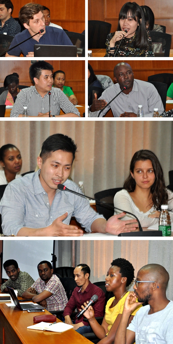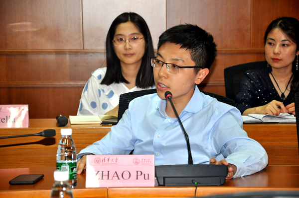随后,学院MPP-SDG、MIDG、IMPA-BRI、MID、IMPA国际硕士项目学生代表们分别就课程体系、尊师重教、学术规范、课堂纪律、规则意识五个议题依次发言,表达了在清华公管学习期间的收获,并提出了许多建设性意见。MPP-SDG 2017级学生代表Gerry Xie建议学院增设可持续发展方向专业课程,为提高学生们的研究能力增加相应的训练内容,采取理论与实践并重的授课方式。MIDG 2018级学生代表Jean-Luc Fiol Nouveau建议更多任课教师能够对学生们的课堂作业、期末成绩给予细致反馈,希望学院设立导师office hour机制、促进师生交流,改进英文课程的教学评估方式。IMPA-BRI 2018级学生代表Christopher Tanujaya与在场教师们探讨了学院关于考勤、选课、论文答辩等方面的具体规范,建议学校能够优化在线管理系统,建设英文版操作平台。MID 2018级学生代表Dita Kusumasari提出了国际学生们在选课、申请校内住宿等方面遇到的困难并提供了宝贵意见。IMPA 2018级学生代表Sahr John Panda提出一年制的学生们在选课方面的主要困难集中在公共必修环节,此外有意向继续深造的学生希望增加硕士项目学分量,以满足申请博士项目的学分要求。在各项目学生代表发言结束后,其他与会学生积极发言、讨论热烈。与会学术主任、教师代表以及教学办副主任杨安安就学生们提出的学风问题及建设性意见予以一一回应。